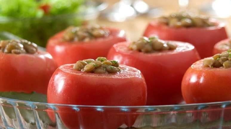 Ingredientes da lentilha no tomate: