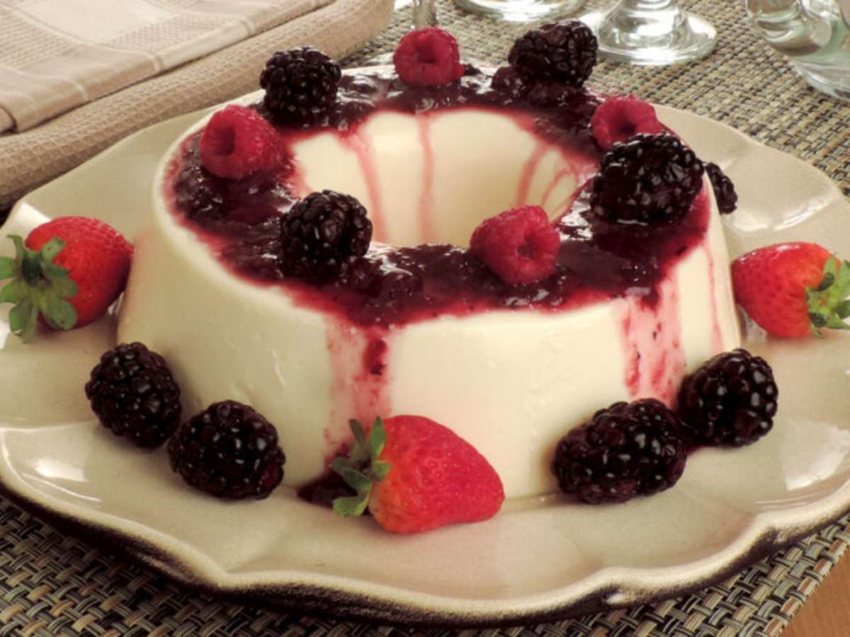 Pudim com frutas vermelhas