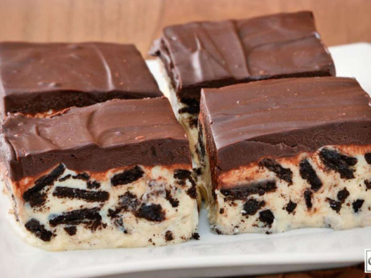 Misture o chocolate com o leite condensado e o leite pó até homogeneizar. Junte o Oreo® e misture até incorporar. Espalhe em uma fôrma retangular de 22cm x 30cm untada, alisando com uma espátula. Leve à geladeira por 1 hora. Misture os ingredientes da cobertura, espalhe sobre o fudge, alisando bem, e volte à geladeira por 1 hora. Corte em pedaços e sirva.