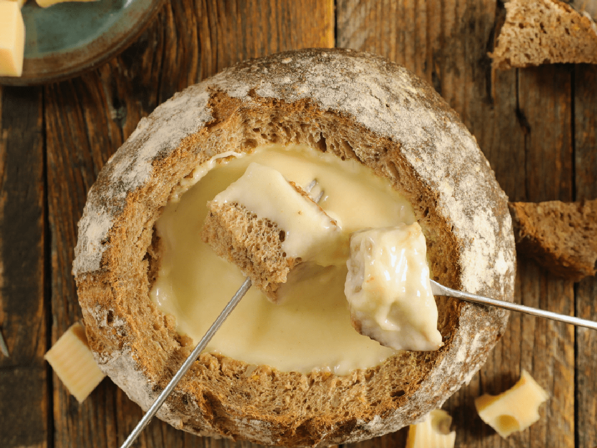 Fondue de queijo super cremoso para um jantar romântico a 2 : sem panela especial, servido no pão
