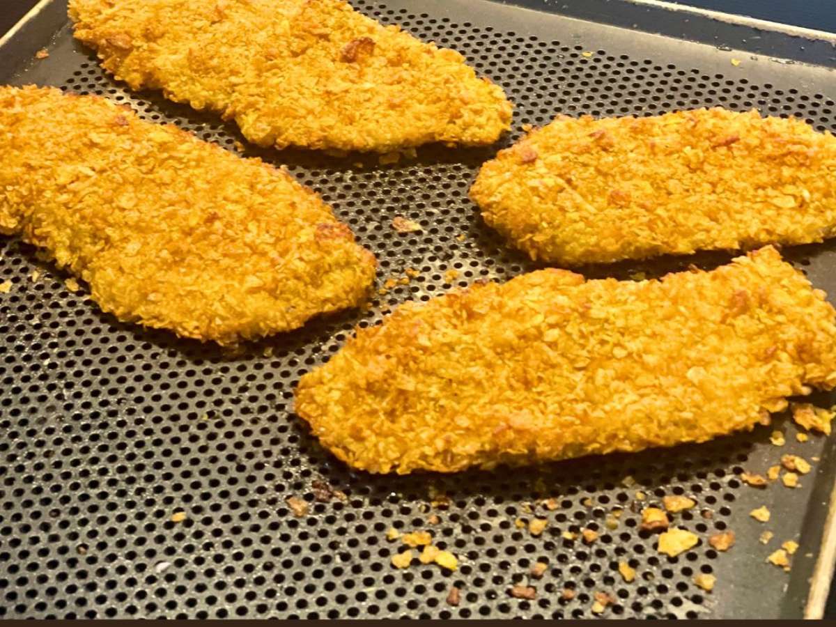 Uma receita saudável e deliciosa de frango crocante empanado com cereal de milho, sem fritura e fácil de fazer