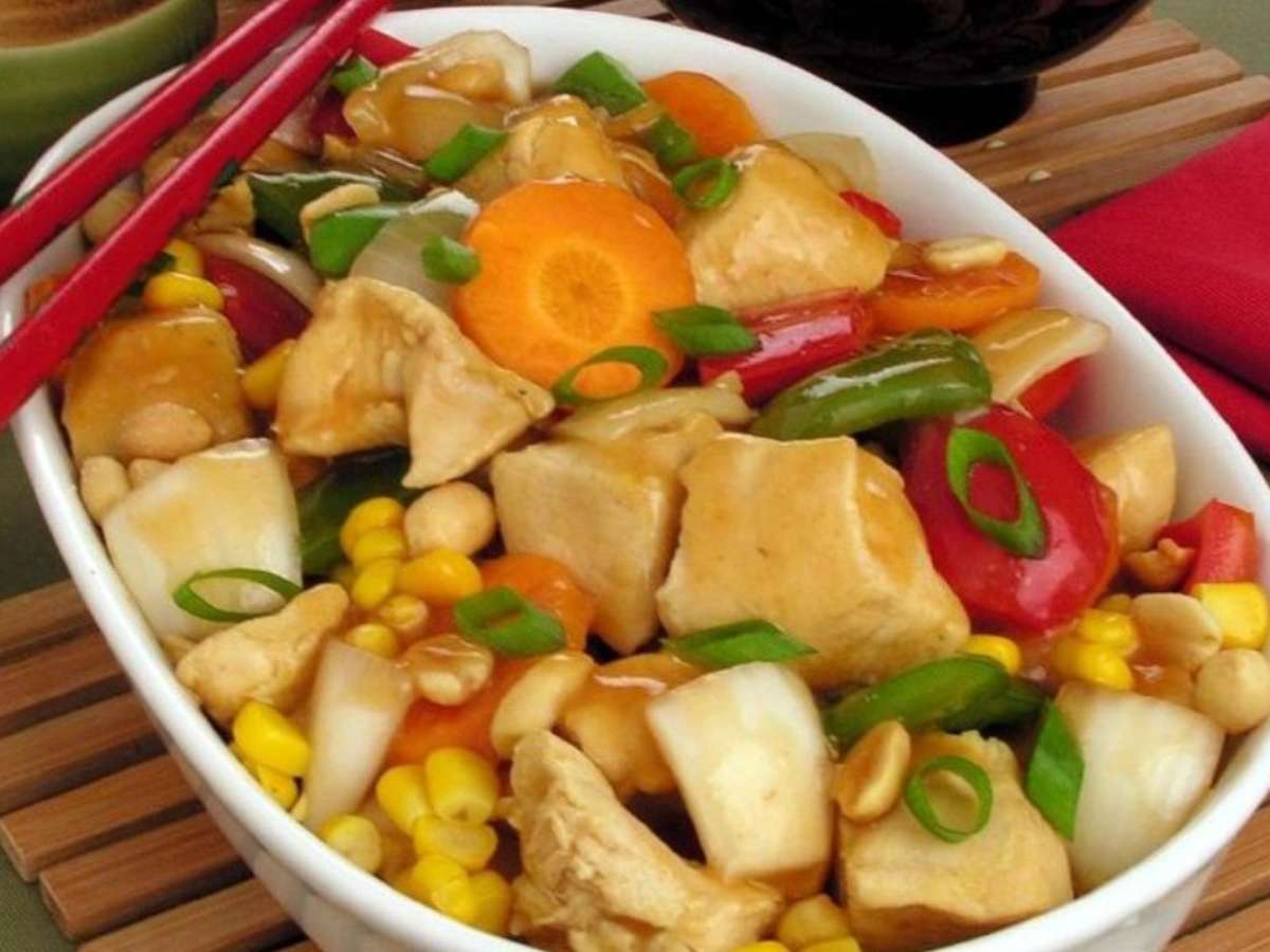 Também conhecido como frango kung pao, o prato combina frango, pimentões, cebola e amendoim em uma mistura cheia de textura e cor. O resultado é uma refeição equilibrada, com um leve contraste entre o adocicado e o salgado, perfeita para variar o cardápio do dia a dia.