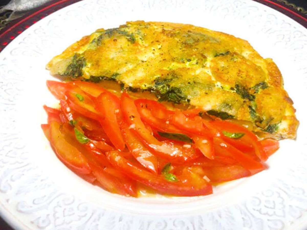 - Coloque os tomates marinados em uma travessa ou arrume nos pratos, ao lado da fritada.