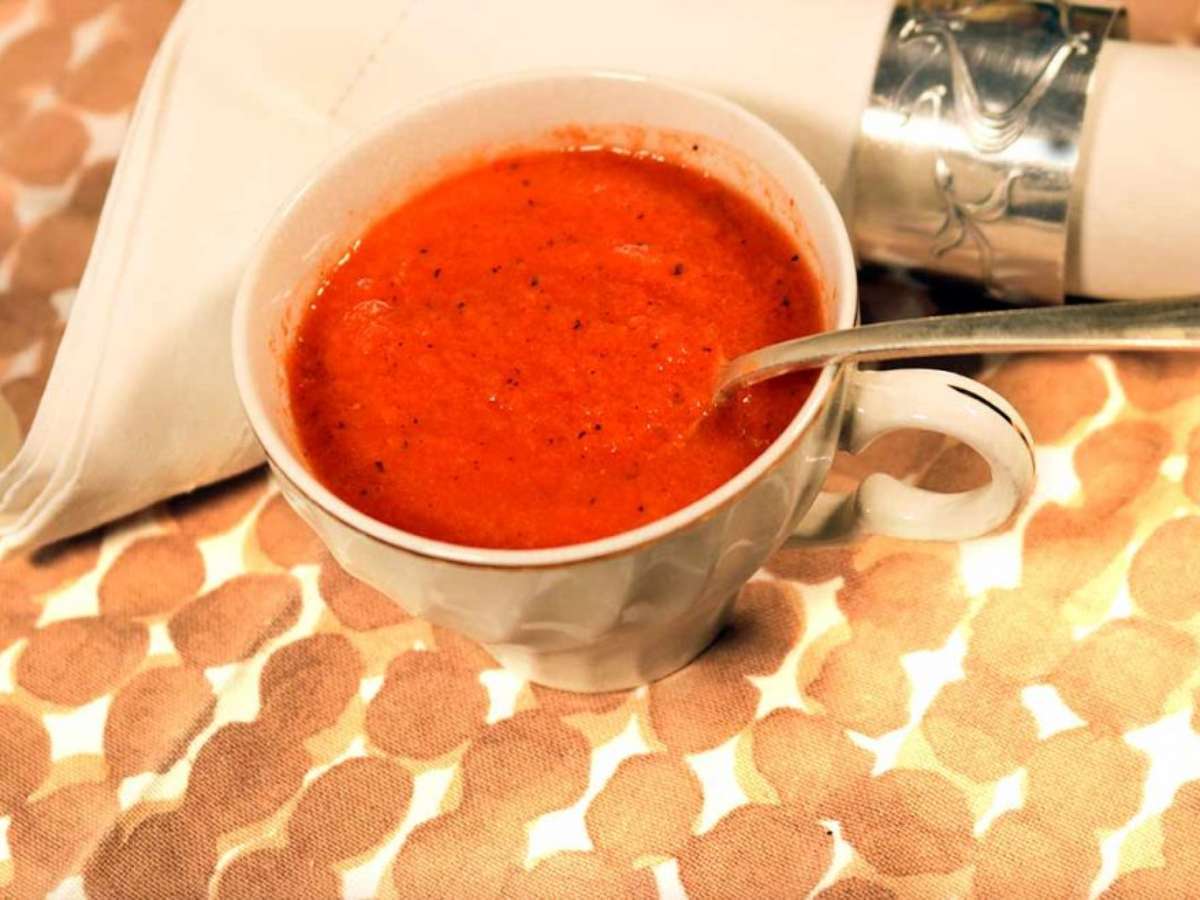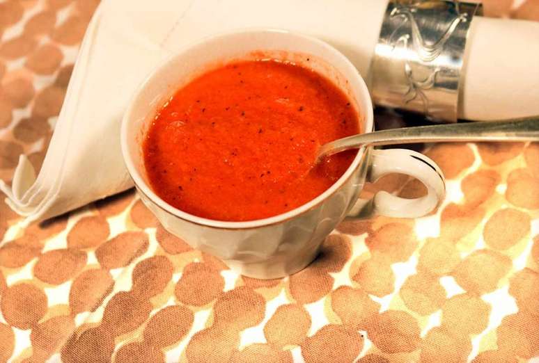 Gaspacho leve com tomate e pimentão grelhado