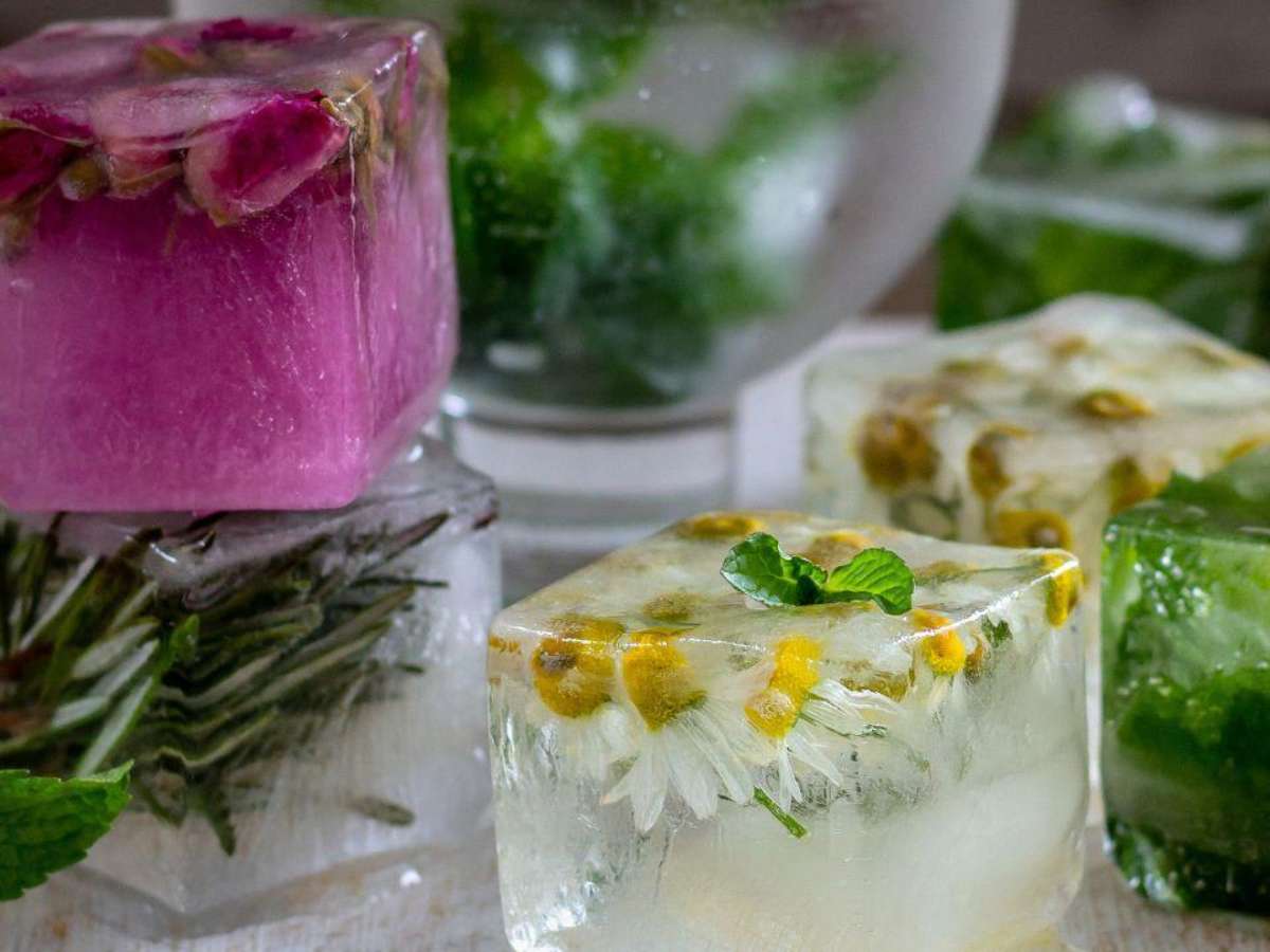 Esses cubos ficam lindos e perfumam a bebida enquanto derretem.