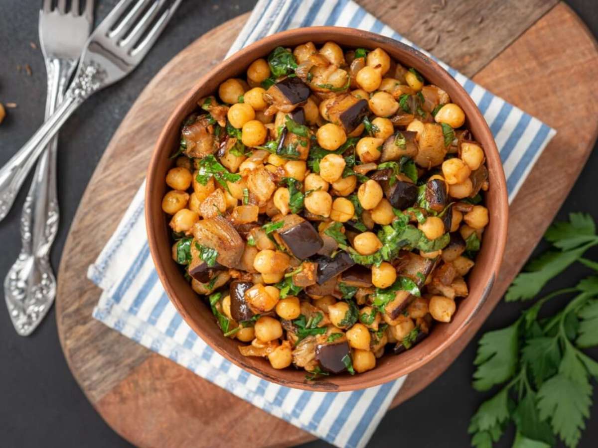 1. Grão-de-bico com berinjela