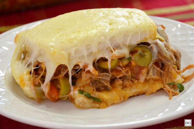 - 3 xícaras (chá) de carne cozida ou assada desfiada