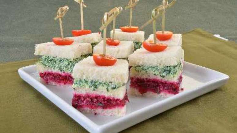 - Retire, corte cada sanduíche em 4 partes, formando 4 mini-sanduíches.