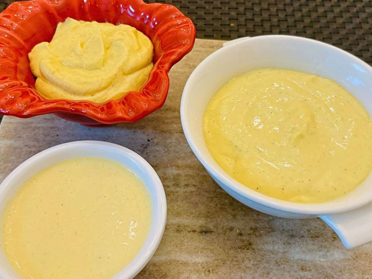 3 opções de receitas para produzir em casa a sua versão de maionese caseira, sendo 2 delas com ovos cozidos e 1 sem óleo ou azeite.