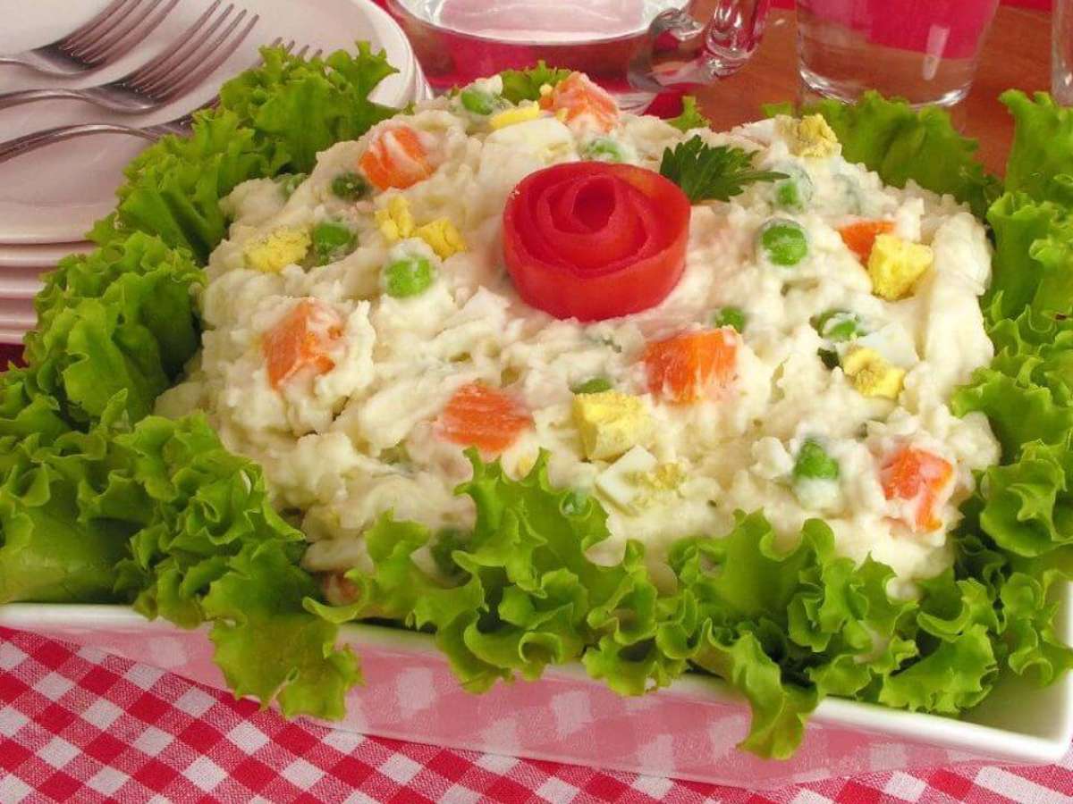 Esta maionese de batatas do Guia da Cozinha fica muito mais cremosa do que todas as receitas que você já viu por aí. Feita do zero com purê, maionese caseira e legumes, a maionese vai completar perfeitamente o almoço e deixar todo mundo pedindo por mais. Por isso, aprenda a fazer seguindo as instruções simples a seguir: