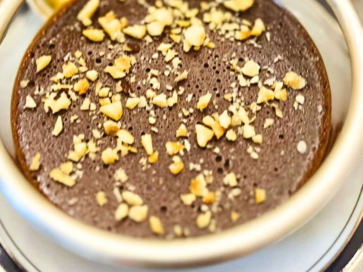 - Retire a mousse de chocolate 02 ingredientes da geladeira e, se desejar, finalize com a farofa de castanhas ou avelãs (opcional).