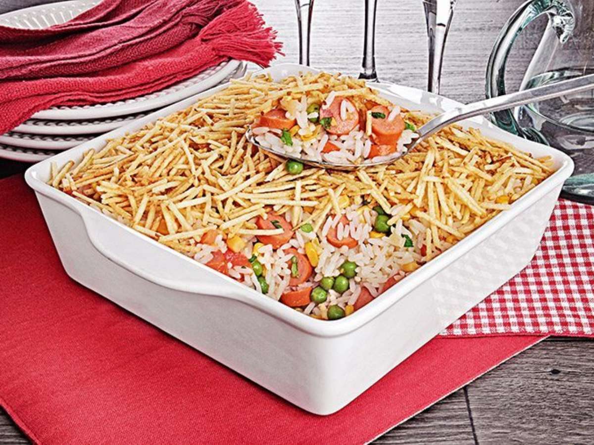 Arroz de cachorro-quente - Foto: Stela Handa Tempo: 20min Rendimento: 5 porções Dificuldade: fácil