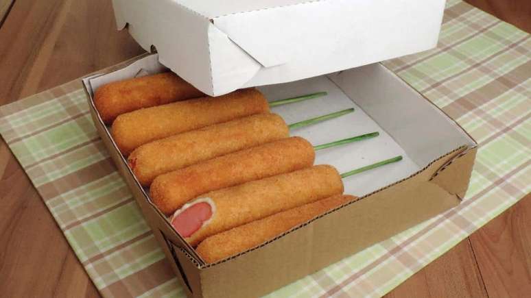 - Introduza um palito em uma das extremidades da salsicha e sirva em seguida.