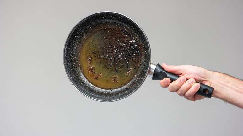 - Deixe a mistura agir: aplique a solução escolhida na panela queimada e deixe agir por pelo menos 15 minutos.