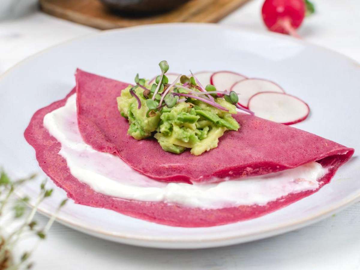 A panqueca colorida transforma o visual do almoço cotidiano em uma verdadeira obra de arte. Esta receita utiliza o poder dos vegetais para tingir a massa de forma natural.
