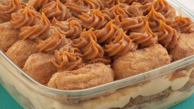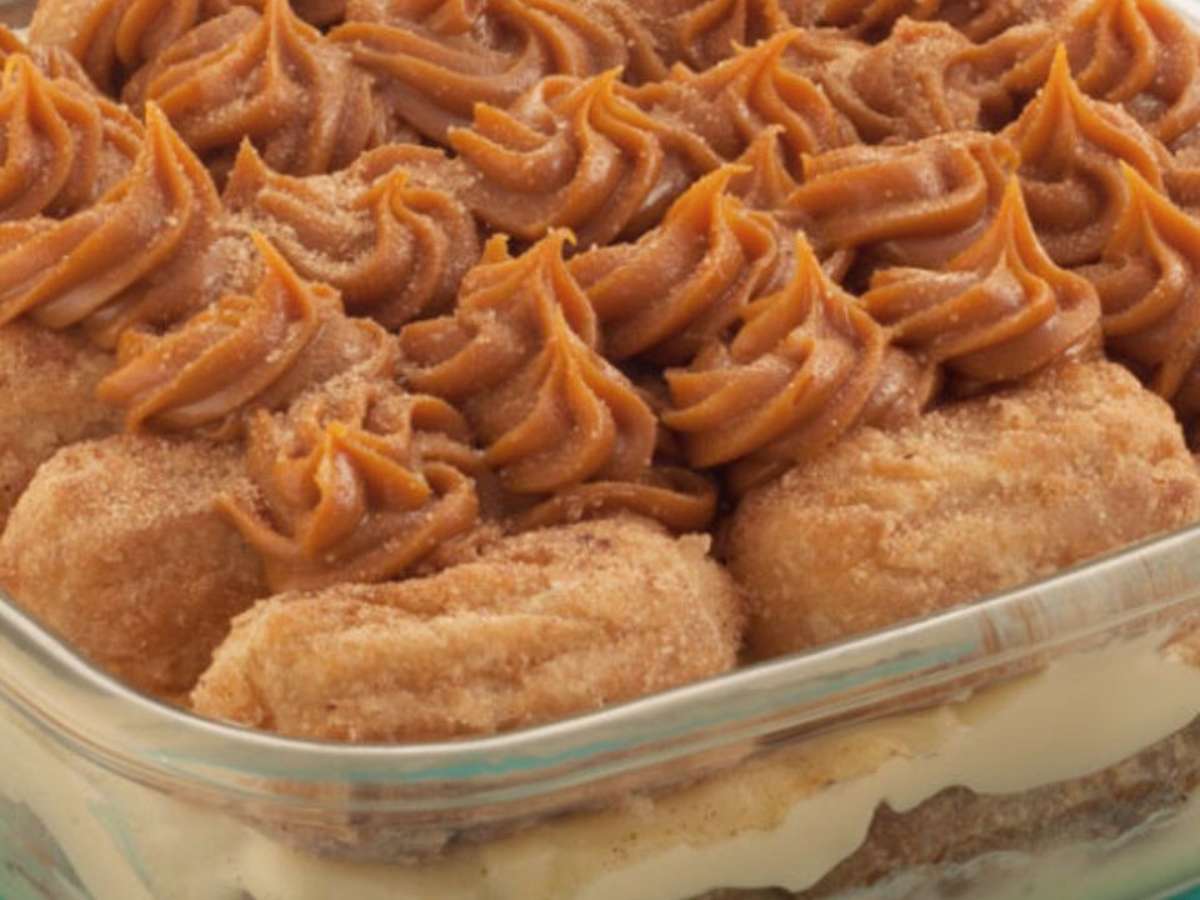 Esta nova sobremesa surpreendente combina dois dos doces favoritos da culinária brasileira, apostando em muita cremosidade, mini churros fritos e também no irresistível leite condensado cozido.