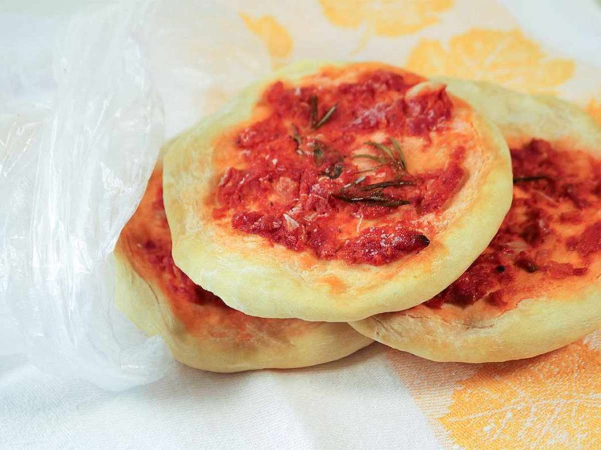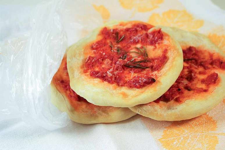 A receita dessas pizzas pequenas - e elas tem apenas dez centímetros de diâmetro, tem o tamanho perfeito para congelar. Não ocupam espaço no congelador, e também descongelam rapidamente no forno.