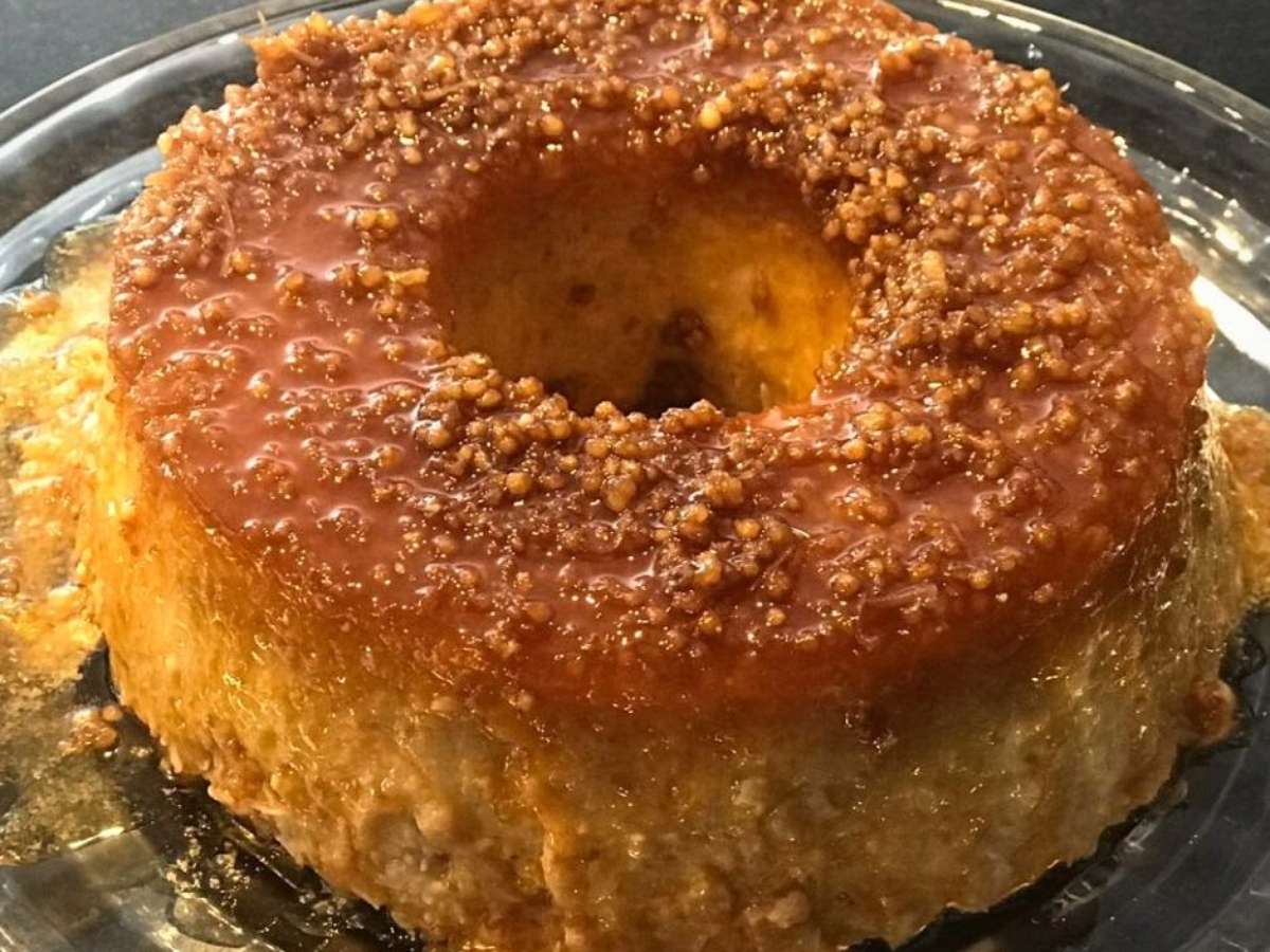 Um pudim com tapioca granulada, que cozinha muito rápido, na pressão.