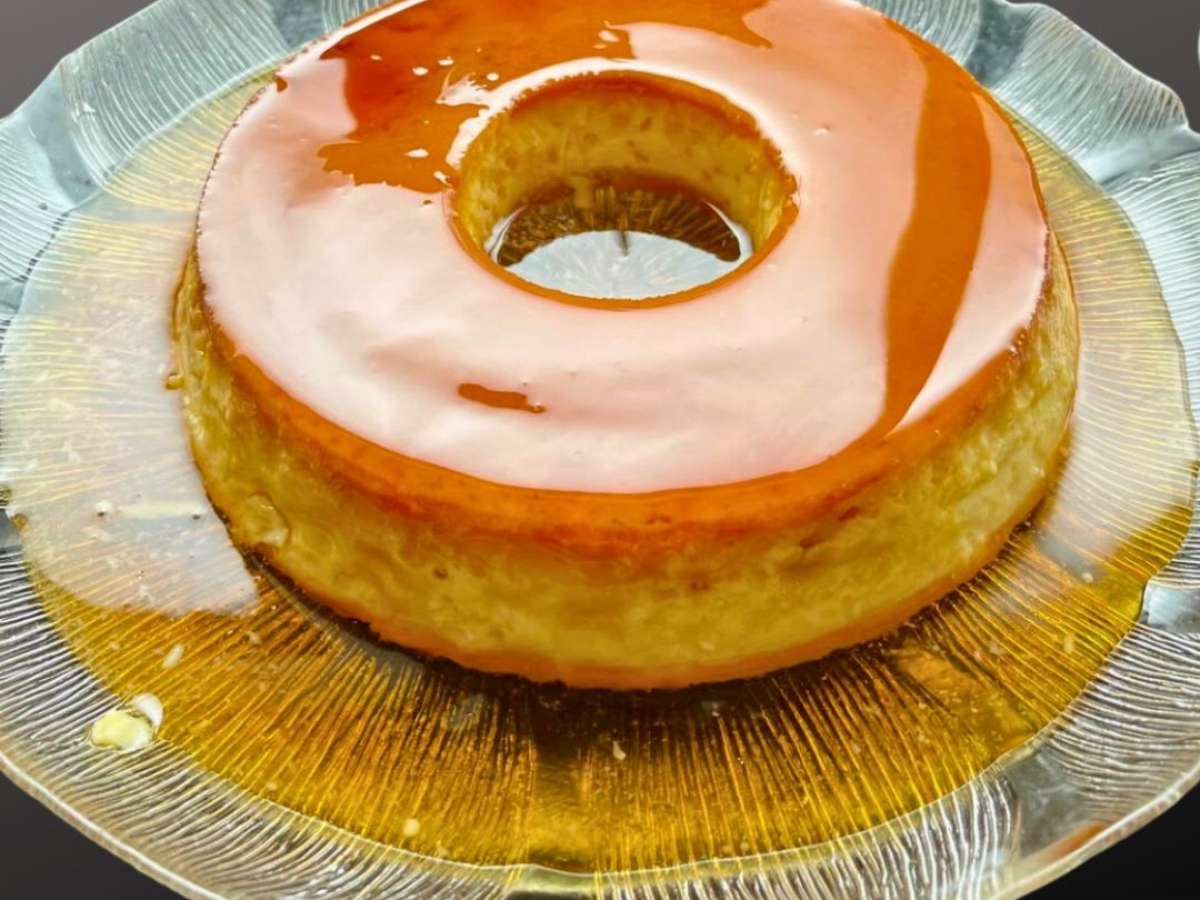- Vire o pudim sobre um prato de servir e deixe a calda escorrer por cima.