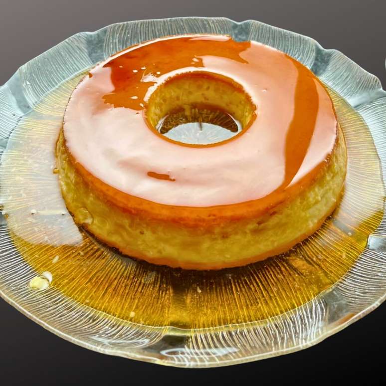 Na hora de servir, desenforme o pudim preparado na airfryer:
