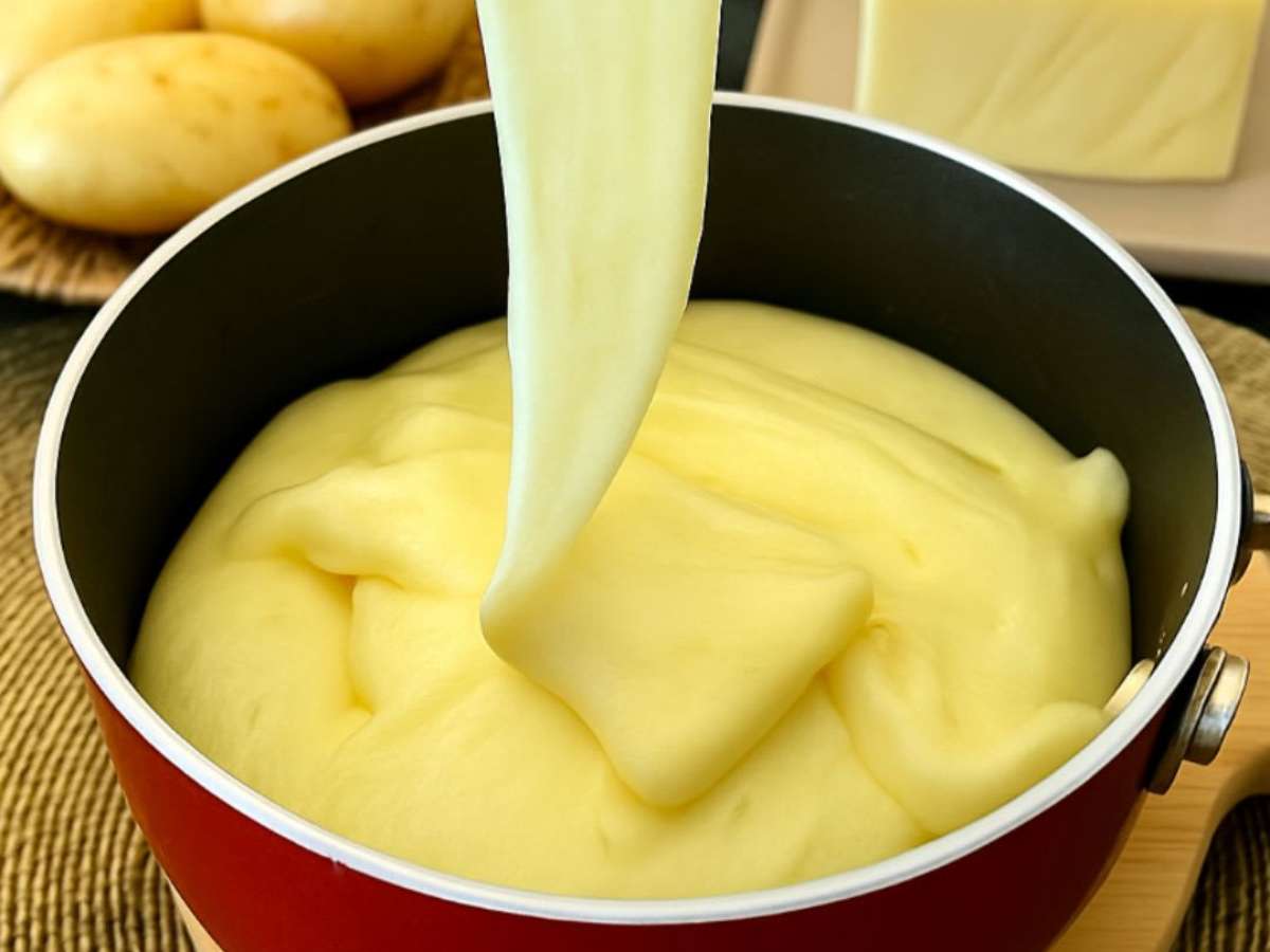 Purê de batata cremoso com queijo que estica e puxa: fácil
