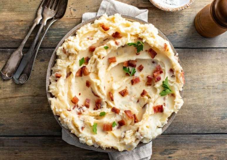 Purê de batata com bacon e parmesão