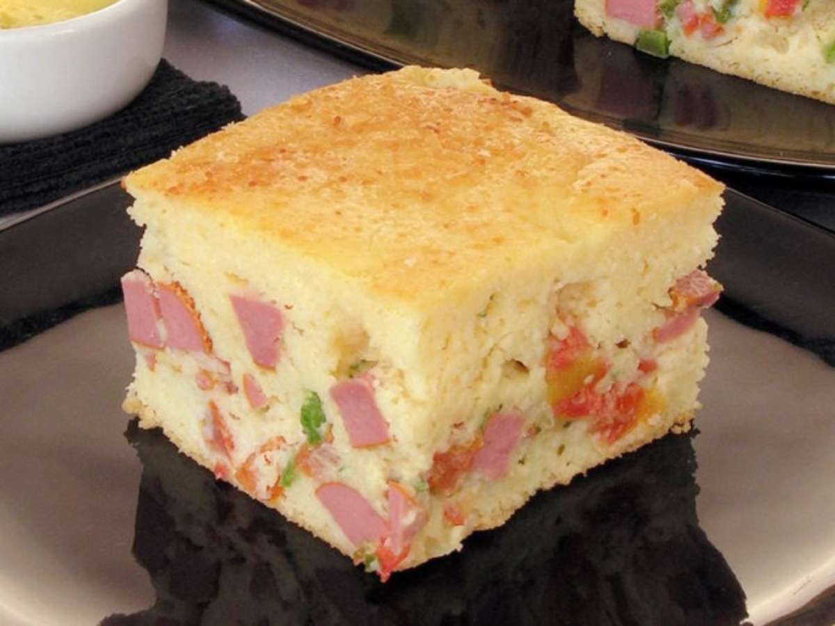 Coloque em uma fôrma retangular de 35cm X 25cm untada e leve ao forno médio, preaquecido, por 30 minutos ou até assar e dourar.