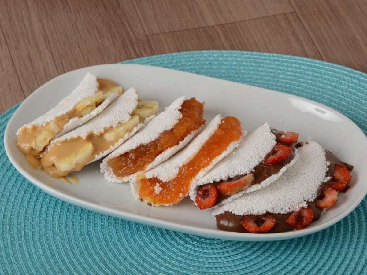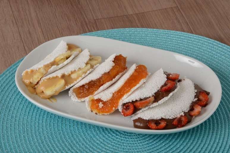Aprenda esta receita de trio de tapiocas doces, que são recheadas com creme de avelã e morango, doce de abóbora com coco e doce de leite com banana. É uma ótima pedida para o café ou sobremesa!