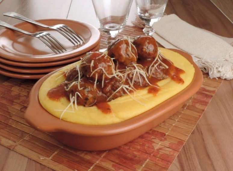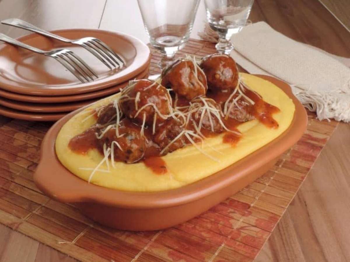 Receita suculenta de polenta com polpetones