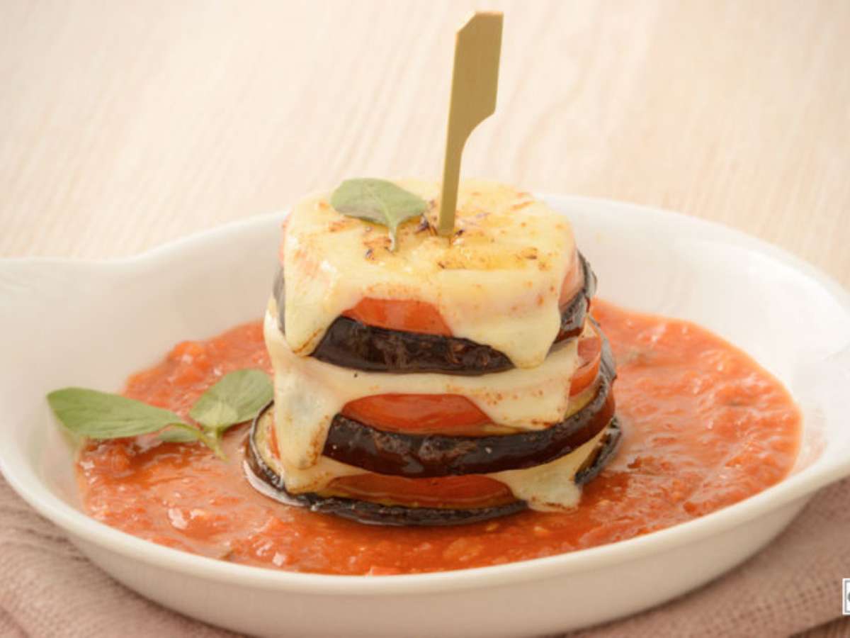 Corte as berinjelas em rodelas de 1cm. Aqueça uma frigideira untada com azeite, em fogo médio, e grelhe as rodelas de berinjela até dourarem. Tempere com sal. Para a montagem, coloque uma rodela de berinjela, uma rodela de tomate polvilhado com sal e orégano, e um pouco de muçarela. Repita as camadas e prenda com um palito de churrasco. Repita o procedimento com os ingredientes restantes, e coloque em uma fôrma grande untada, uma ao lado da outra. Leve ao forno médio, preaquecido, por 10 minutos. Retire e sirva acompanhado de molho de tomate.