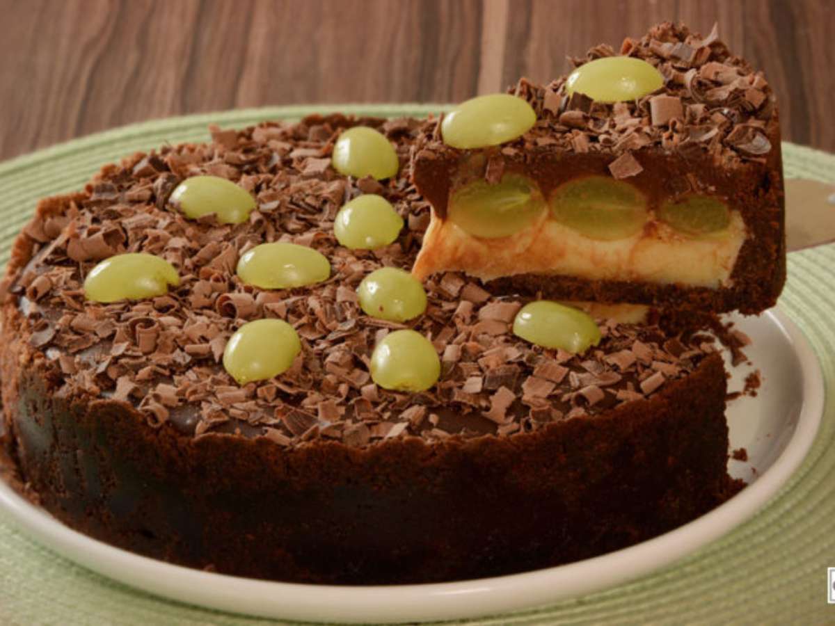 Torta de chocolate com leite em pó e uva