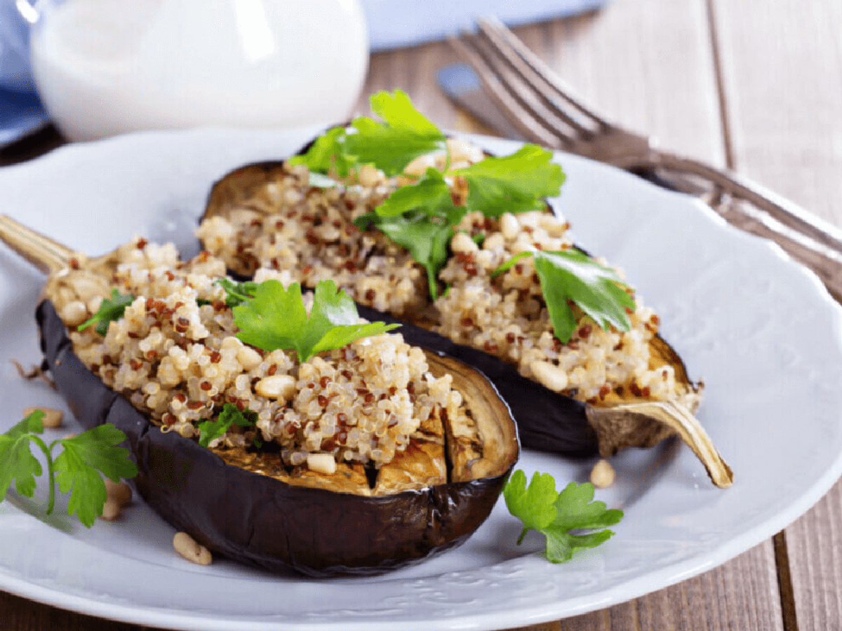 1. Berinjela recheada com quinoa