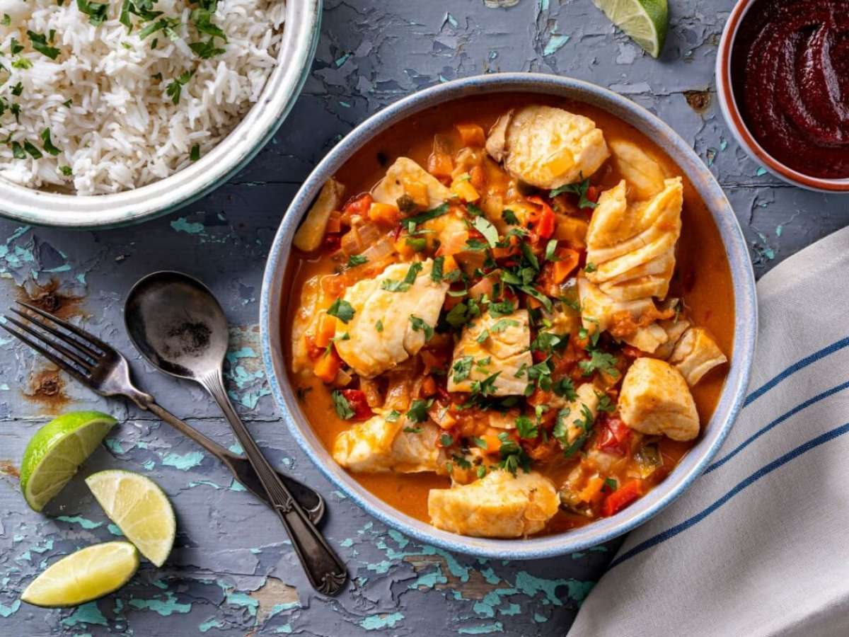 3. Merluza ao curry com leite de coco