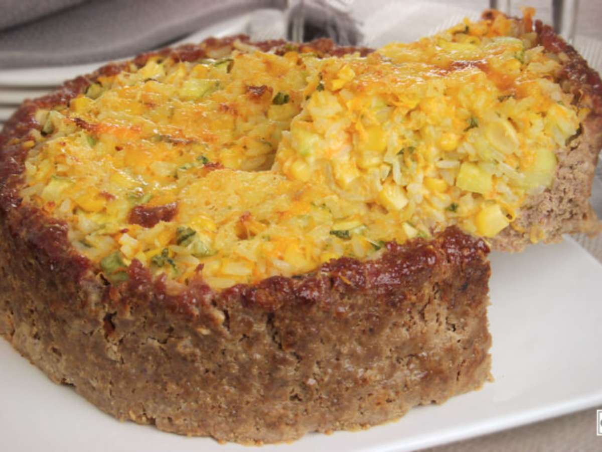 Torta de carne moída com arroz e legumes