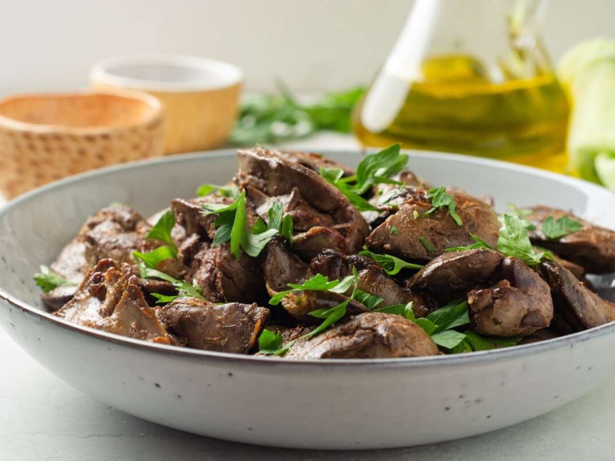 - 500 g de fígado de frango limpo e cortado em pedaços médios