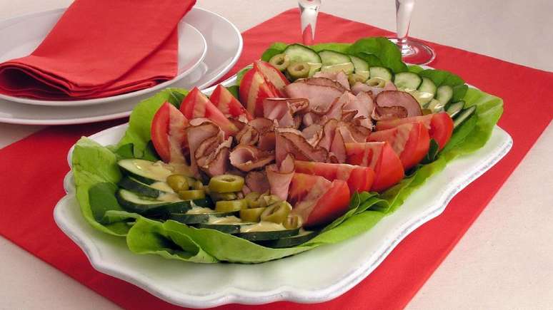 A salada de rosbife fica pronta rapidinho e serve até 4 porções. Em vez de servir aquela salada de folhas sem graça, inove incluindo azeitona, tomate, pepino e rosbife ao preparo! Para deixar tudo ainda melhor, que tal incluir um molho caseiro? Com iogurte, molho inglês, vinagre e mostarda, o molho complementa a receita e deixa tudo mais saboroso e mais elegante na mesa. Olha só:
