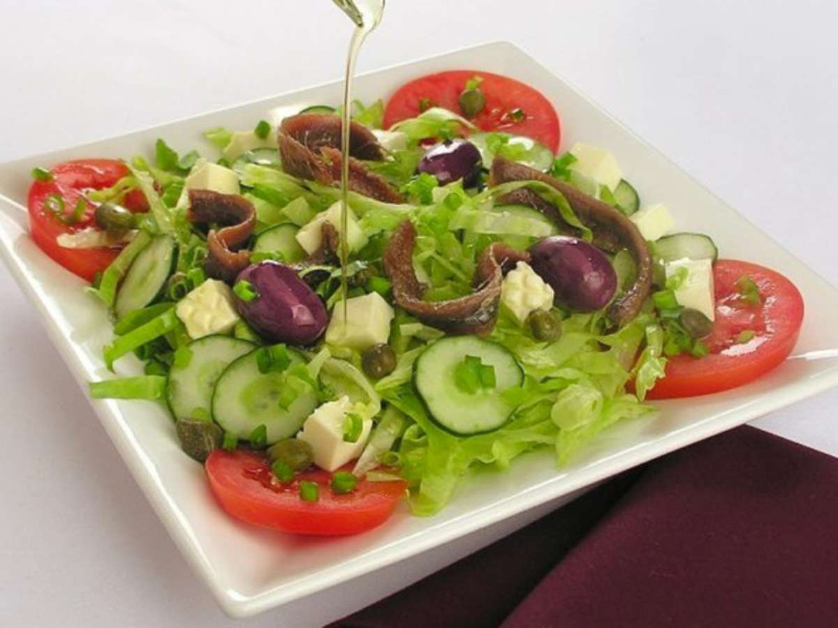 A salada grega com anchovas é um prato perfeito para servir como acompanhamento durante um jantar no fim de semana ou um almoço em família. Recheada de sabores incríveis, essa receita prova que salada não precisa ser um prato sem-graça. Além disso, essa salada grega com anchovas fica pronta em apenas 15 minutos. Ou seja, é muito prática. Vale a pena provar!