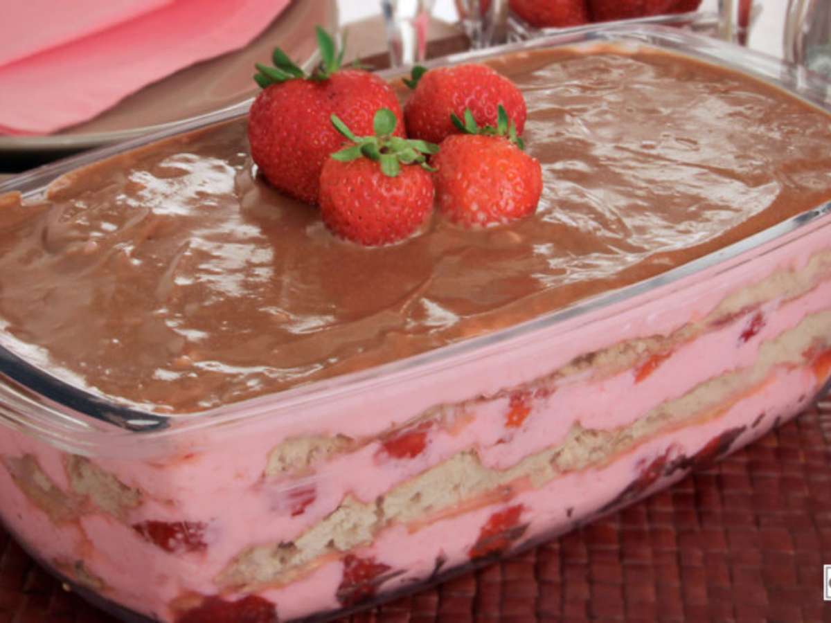 No refratário de 34cm x 20cm, faça uma camada de creme, uma de suspiro, outra de creme e mais uma de suspiro. Finalize com creme.