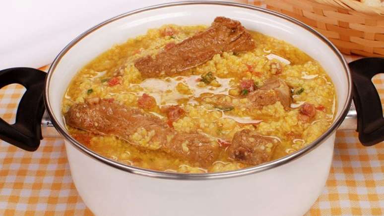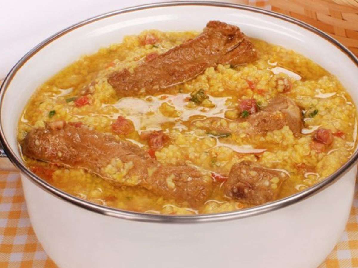 Sopa de canjiquinha com costelinha feita na panela de pressão