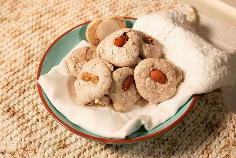 Receita de suspiros de nozes e amêndoas sobre uma hóstia