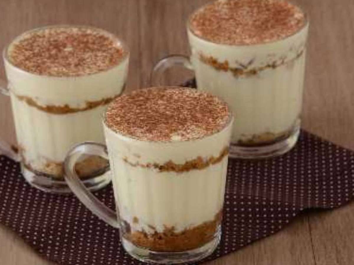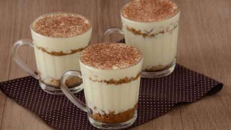 - Em copinhos individuais, faça uma camada com o biscoito picado, regue com o café misturado com o licor e cubra com o creme.