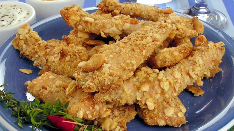 Já imaginou um frango assado com cara de frito? Com a saborosa receita de tiras crocantes de frango do Guia da Cozinha, você vai descobrir que isso é possível! O frango é temperado no ponto certo, empanado e levado ao forno sem precisar de uma gota de óleo no preparo.
