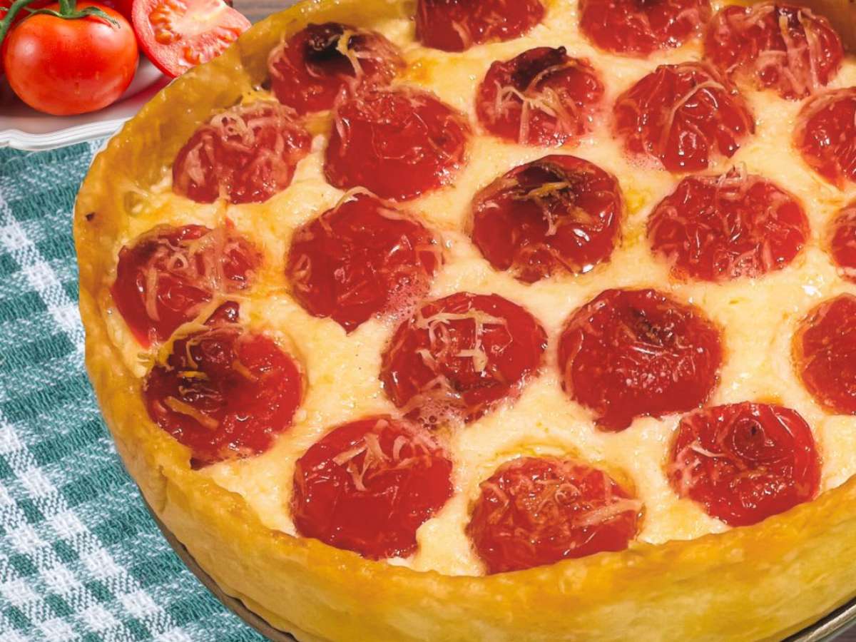 Torta de ricota com tomatinhos: sem pré-assar a massa, fácil