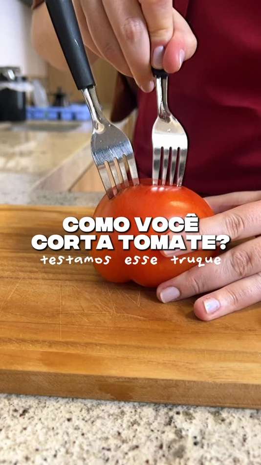 Testamos mais um truque que vimos na internet: cortar tomate de um jeito diferente 😂