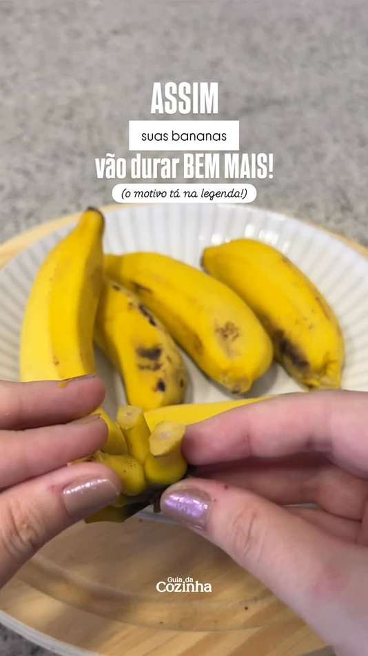 📌 Dica extra: guarde as bananas fora da geladeira e, se quiser ainda mais durabilidade, enrole o cabinho delas com papel alumínio ou filme plástico!