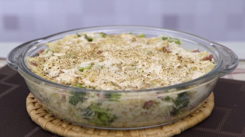 Risoto de forno com linguiça
