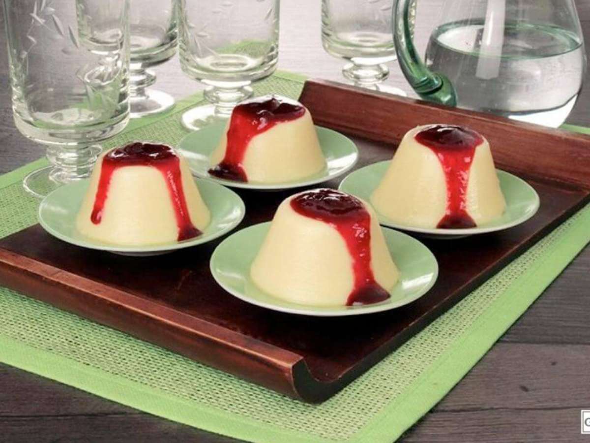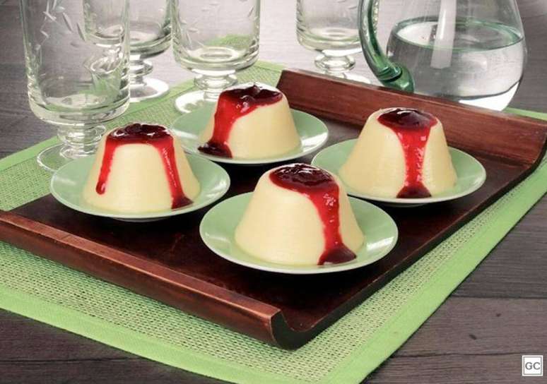 Divida entre forminhas individuais pequenas untadas e leve à geladeira por 4 horas ou até firmar. Em seguida, retire, desenforme, regue com a calda e sirva.