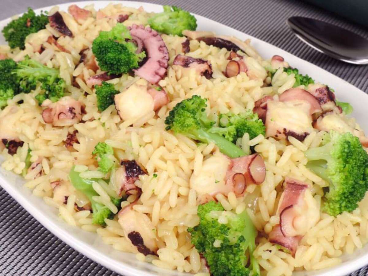 Arroz com polvo e brócolis