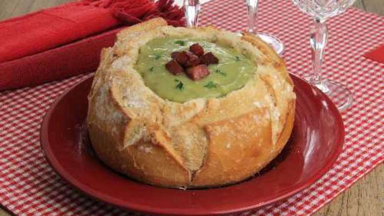 Sopa de ervilha no pão italiano: prato quentinho e cheio de sabor