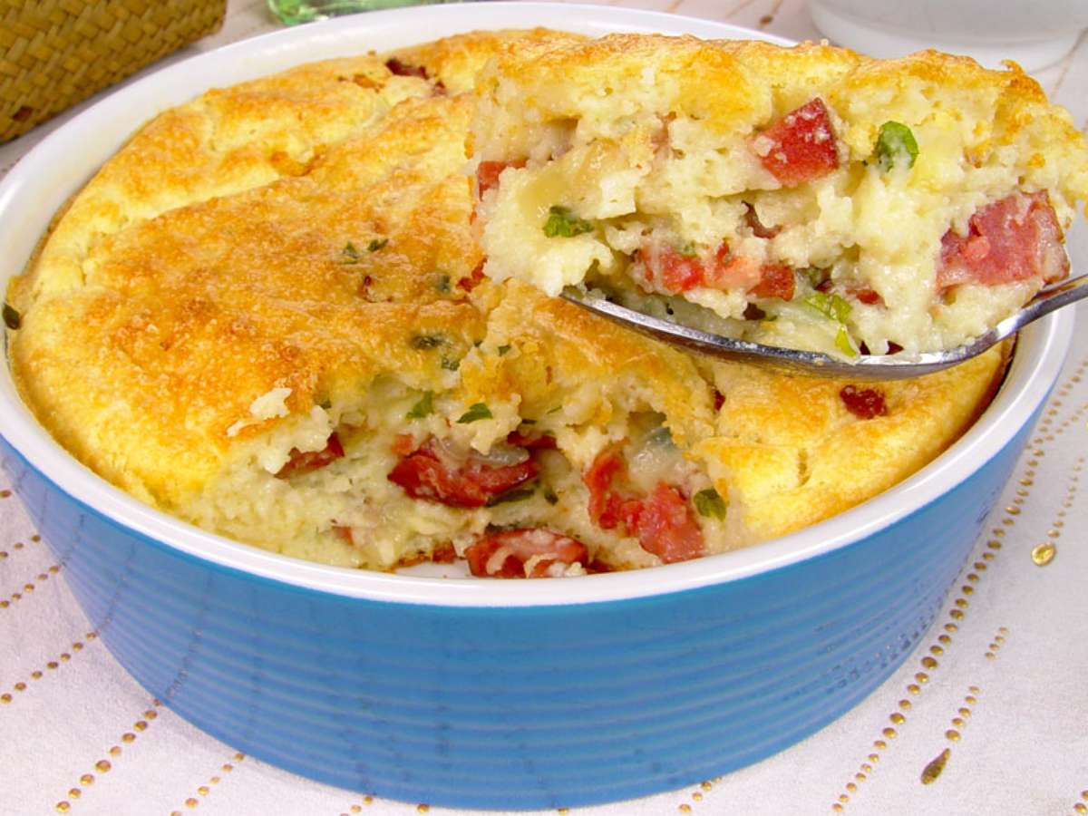 - Misture a calabresa refogada à massa e transfira para um refratário médio untado e enfarinhado